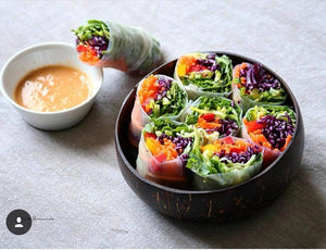Vegan Rice Paper Rolls with Sriracha & Soy Sauce Tofu and Peanut Sauce